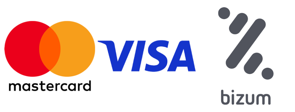 Todos los métodos de pago habituales (Tarjetas de crédito VISA , Mastercard, Bizum.)
